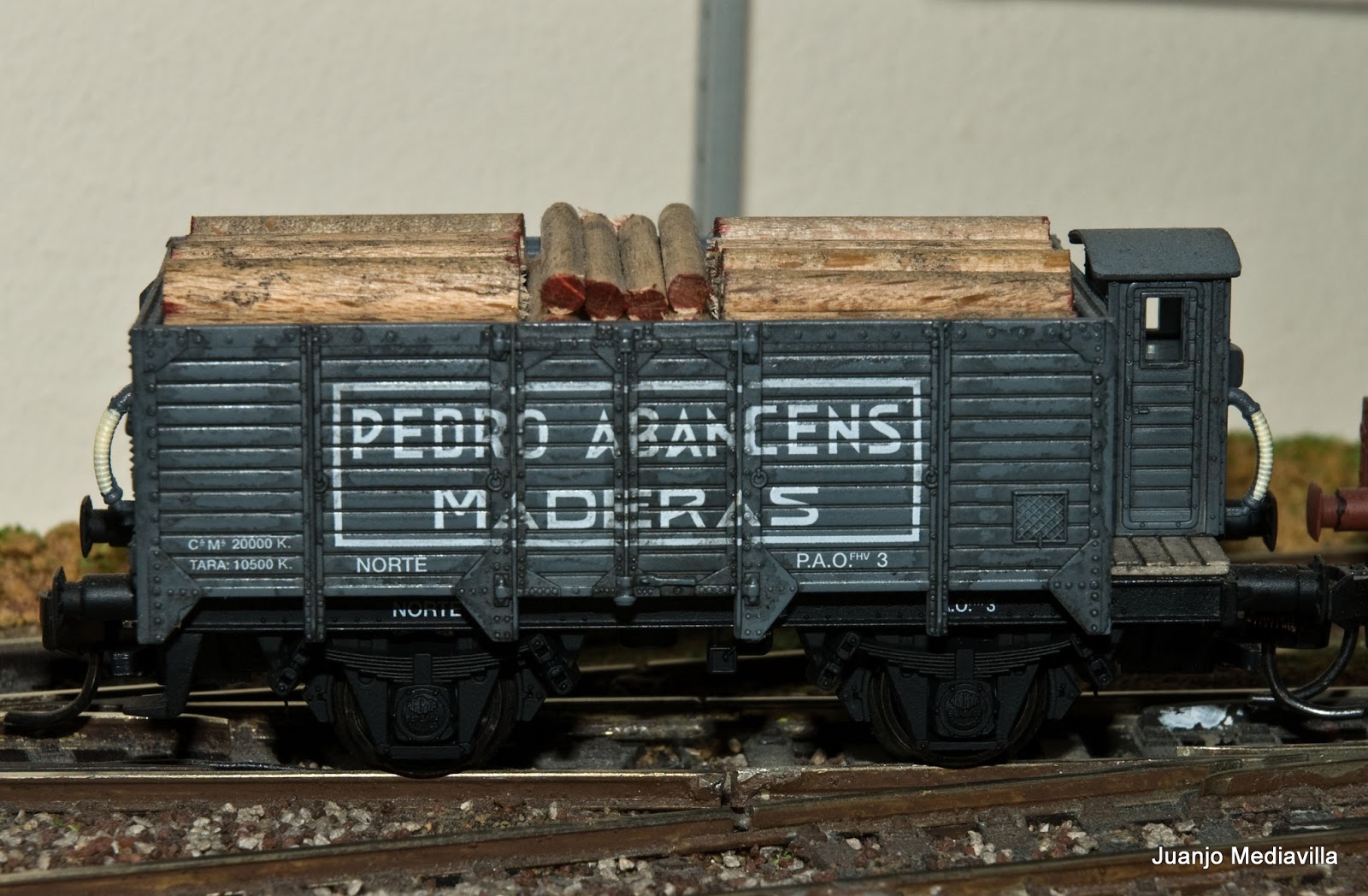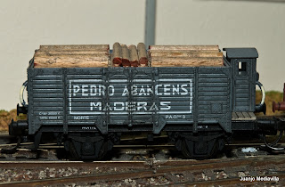 Vagón unificado X2 de bordes altos con garita "Pedro Abancens Maderas" de Norte. Electrotren 1972 |